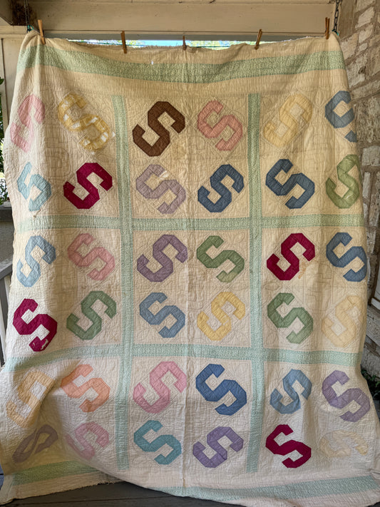Vintage 1930s-50s Handmade "S" Quilt