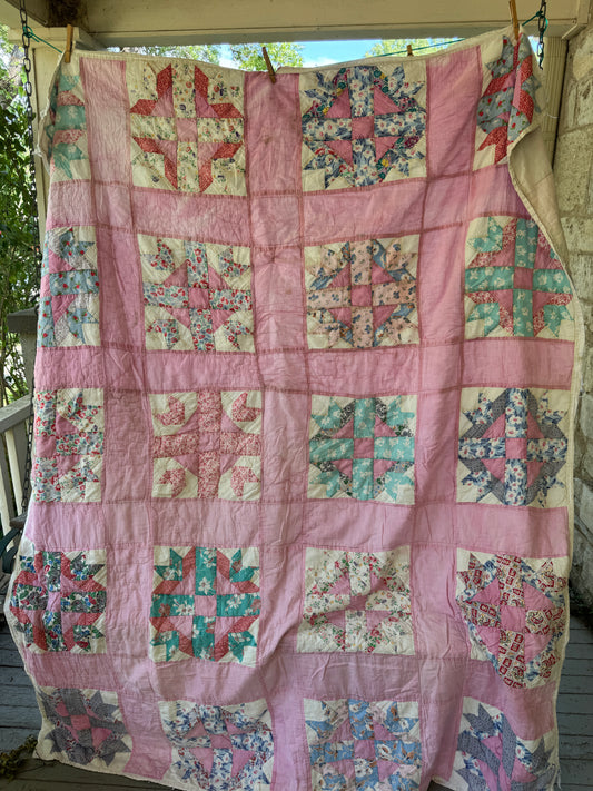Vintage 1930s-40s Pink Goose Tracks Feedsack Quilt