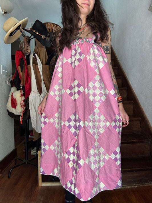 Vintage Quilt Top Dress - Pink and Purple 25-Patch
