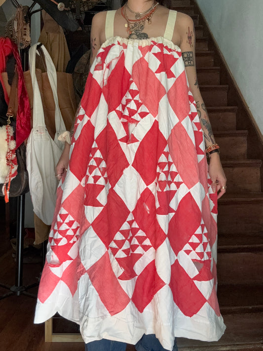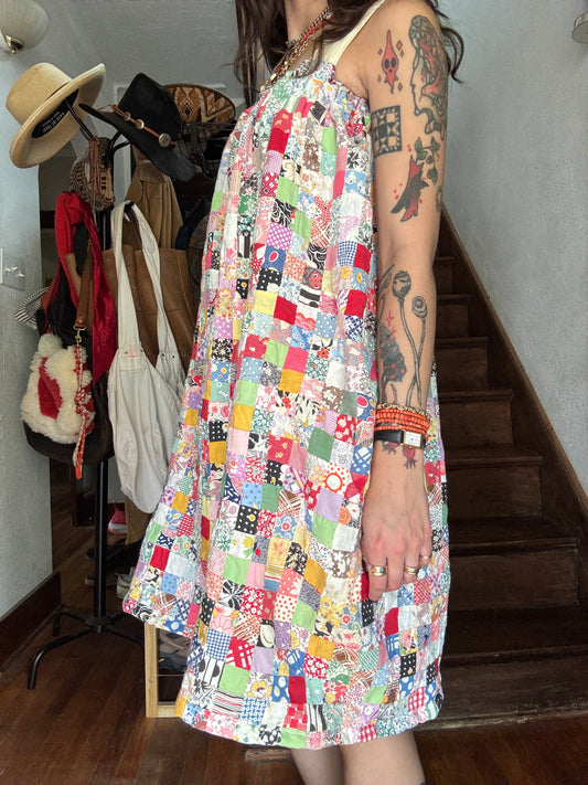 Vintage Quilt Top Dress - Postage Stamp Floursack