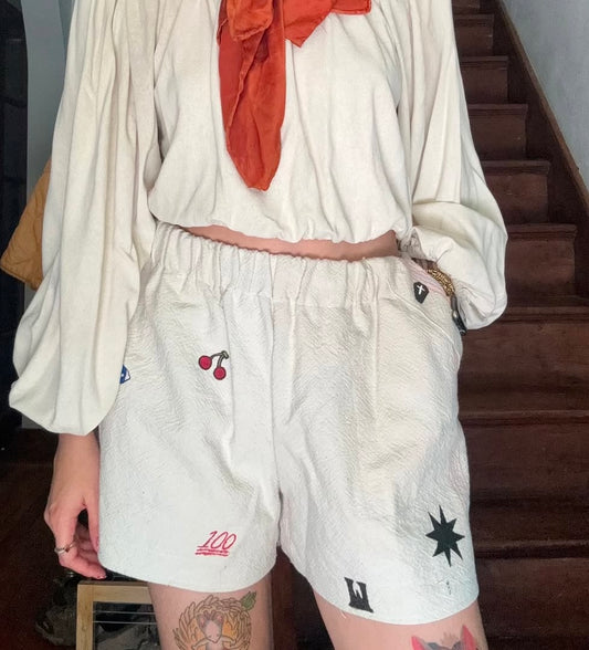 Vintage 1930s-50s Red-White-Blue Hourglass Variant Tie Quilt Shorts