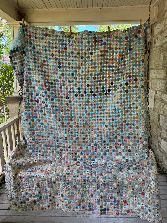 Vintage 1920s-30s Green Feedsack Crazy Tie Quilt