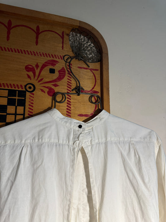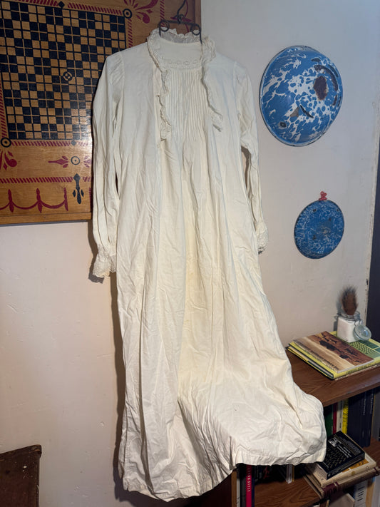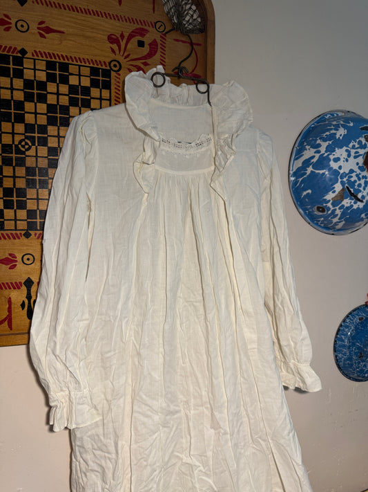 Antique Victorian Long Sleeved Cotton Asymmetrical Opening Nightgown