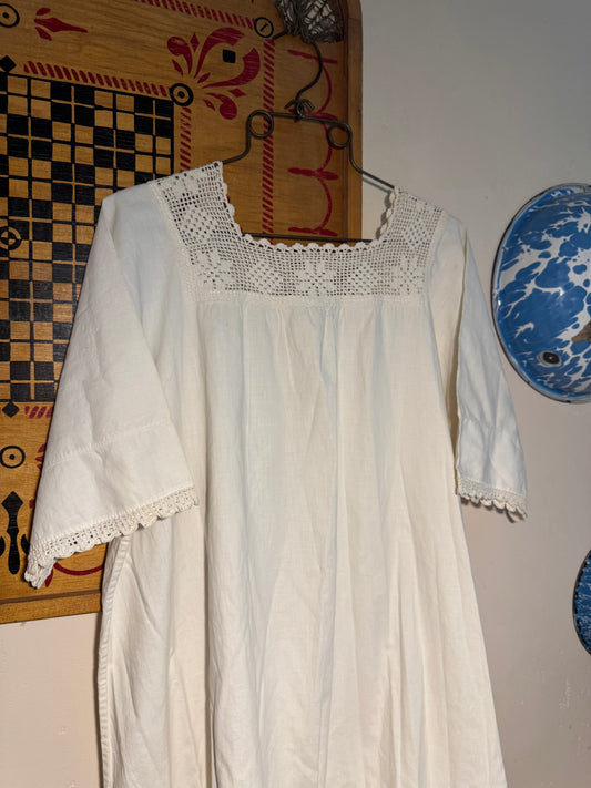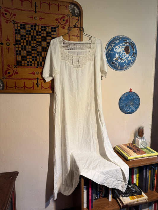 Antique Edwardian Crocheted Collar Nightgown w/ Short Sleeves