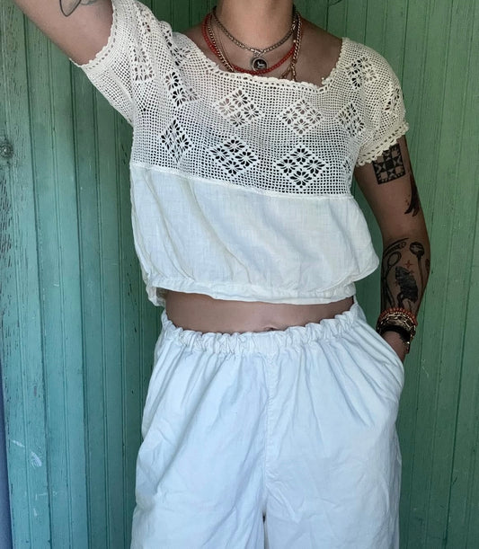 Antique Edwardian Crocheted Corset Cover/Cropped Top