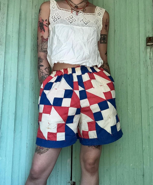 Antique 8-Point Star Multi Calico Quilt Top Halter L2