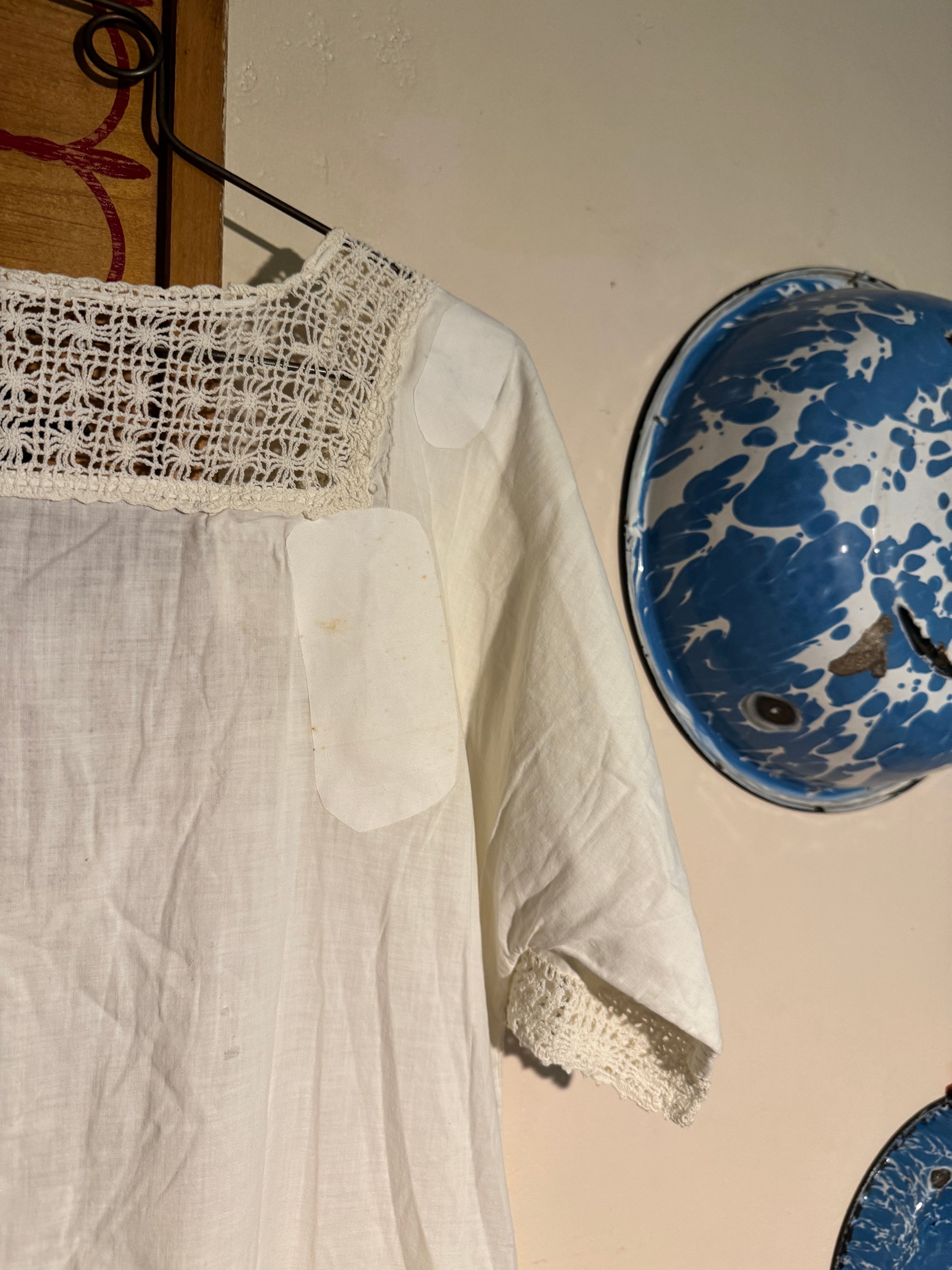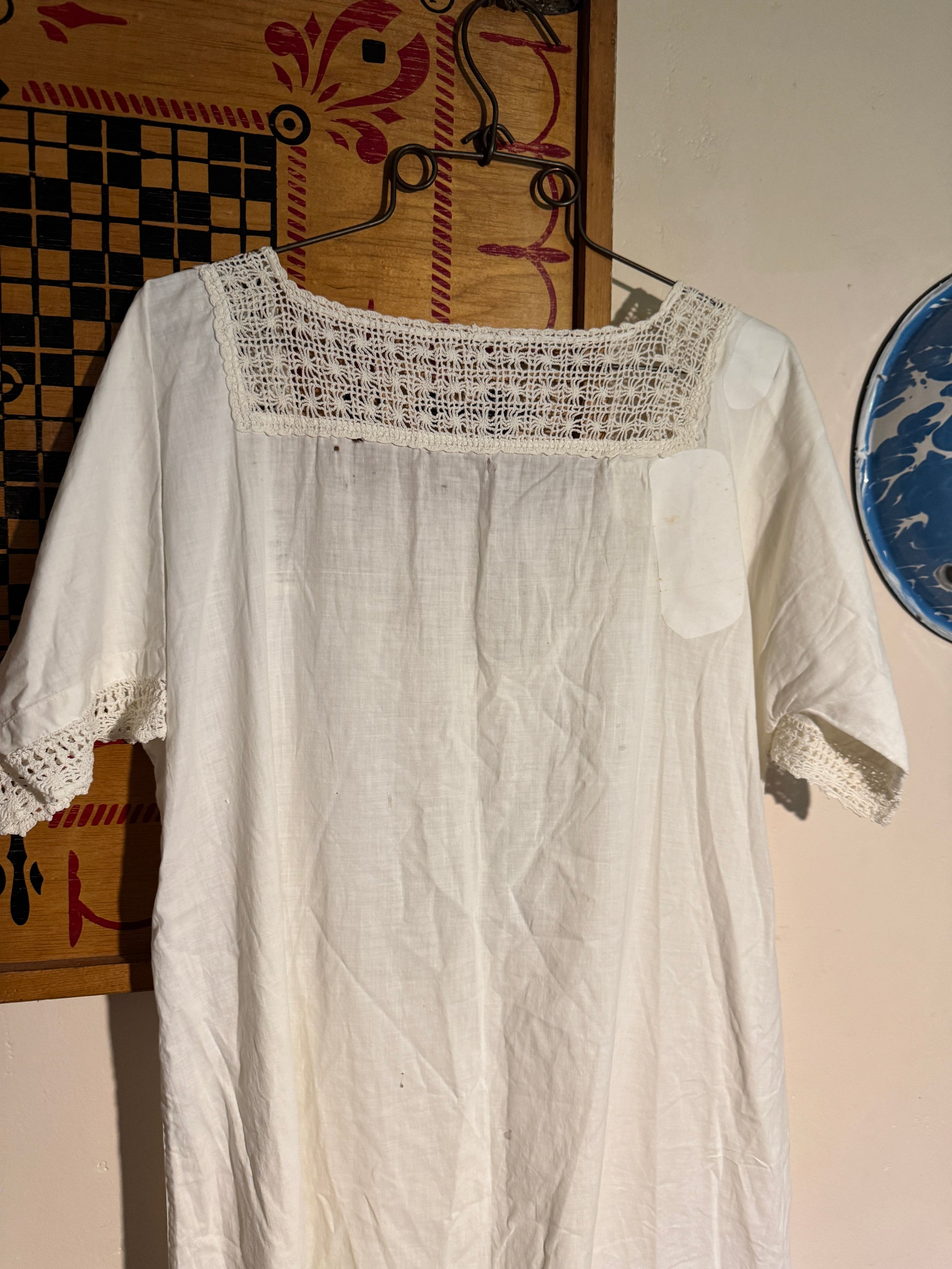 Antique Edwardian Nightgown with Crocheted collar and cuffs, larger size